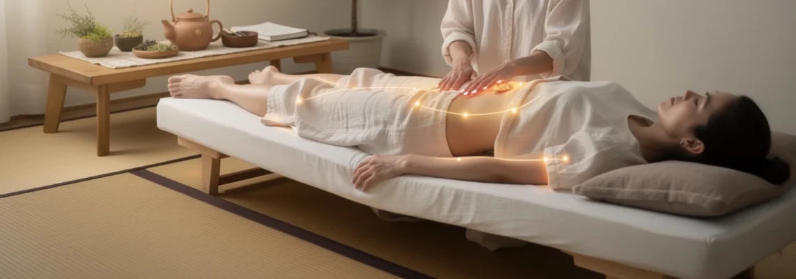Le travail direct sur le ventre, inspiré de la méthode japonaise Ampuku, occupe une place centrale dans le traitement shiatsu de la constipation. L’Ampuku est un ensemble de techniques de pression, de pétrissage et de mobilisation douce appliquées sur l’abdomen, toujours dans le respect du confort du receveur. Le praticien commence par un contact léger, afin de « rencontrer » le ventre, de sentir les zones de froid, de tension, de vide ou de plénitude, puis approfondit progressivement ses gestes.